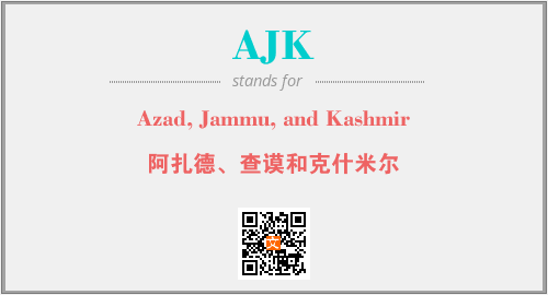 英文缩略词“AJK”经常作为“Azad, Jammu, and Kashmir”的英文缩写来使用,中文表示:“阿扎德、查谟和克什米尔”。本文将详细介绍英文缩写词AJK所代表英文单词,其对应的中文拼音、详细解释以及在英语中的流行度。此外,还有关于缩略词AJK的分类、应用领域及相关应用示例等。