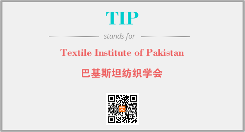 英文缩略词“TIP”经常作为“Textile Institute of Pakistan”的英文缩写来使用,中文表示:“巴基斯坦纺织学会”。本文将详细介绍英文缩写词TIP所代表英文单词,其对应的中文拼音、详细解释以及在英语中的流行度。此外,还有关于缩略词TIP的分类、应用领域及相关应用示例等。