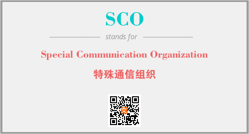 上述内容是“Special Communication Organization”作为“SCO”的缩写,解释为“特殊通信组织”时的信息,以及英文缩略词SCO所代表的英文单词,其对应的中文拼音、详细解释以及在英文中的流行度和相关分类、应用领域及应用示例等。