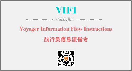 上述内容是“Voyager Information Flow Instructions”作为“VIFI”的缩写,解释为“航行员信息流指令”时的信息,以及英文缩略词VIFI所代表的英文单词,其对应的中文拼音、详细解释以及在英文中的流行度和相关分类、应用领域及应用示例等。