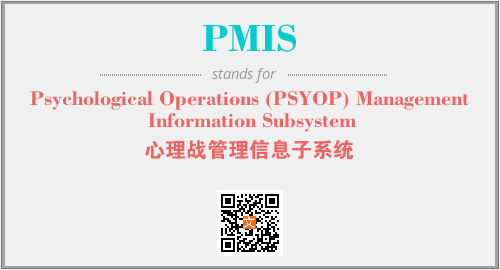 上述内容是“Psychological Operations (PSYOP) Management Information Subsystem”作为“PMIS”的缩写,解释为“心理战管理信息子系统”时的信息,以及英文缩略词PMIS所代表的英文单词,其对应的中文拼音、详细解释以及在英文中的流行度和相关分类、应用领域及应用示例等。