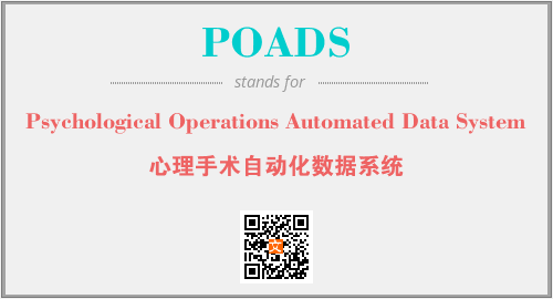 以上为Psychological Operations Automated Data System英文缩略词POADS的中文解释,以及该英文缩写在英语的流行度、分类和应用领域方面的信息。