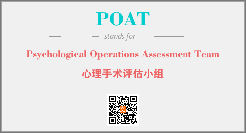 以上为Psychological Operations Assessment Team英文缩略词POAT的中文解释,以及该英文缩写在英语的流行度、分类和应用领域方面的信息。