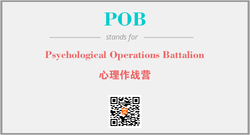 英文缩略词“POB”经常作为“Psychological Operations Battalion”的英文缩写来使用,中文表示:“心理作战营”。本文将详细介绍英文缩写词POB所代表英文单词,其对应的中文拼音、详细解释以及在英语中的流行度。此外,还有关于缩略词POB的分类、应用领域及相关应用示例等。