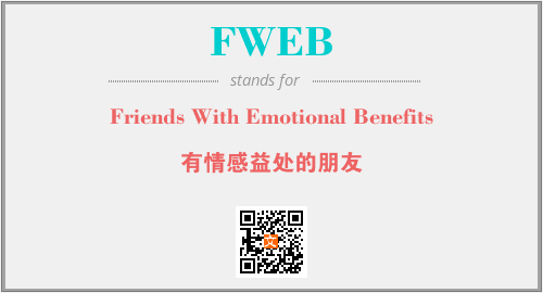 上述内容是“Friends With Emotional Benefits”作为“FWEB”的缩写,解释为“有情感益处的朋友”时的信息,以及英文缩略词FWEB所代表的英文单词,其对应的中文拼音、详细解释以及在英文中的流行度和相关分类、应用领域及应用示例等。