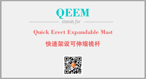 英文缩略词“QEEM”经常作为“Quick Erect Expandable Mast”的英文缩写来使用,中文表示:“快速架设可伸缩桅杆”。本文将详细介绍英文缩写词QEEM所代表英文单词,其对应的中文拼音、详细解释以及在英语中的流行度。此外,还有关于缩略词QEEM的分类、应用领域及相关应用示例等。