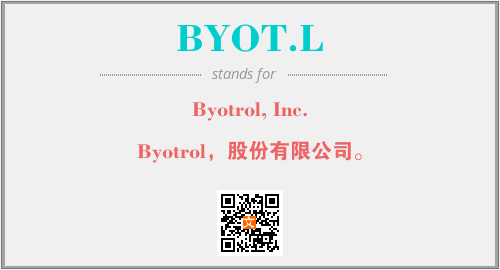 上述内容是“Byotrol, Inc.”作为“BYOT.L”的缩写,解释为“Byotrol,股份有限公司。”时的信息,以及英文缩略词BYOT.L所代表的英文单词,其对应的中文拼音、详细解释以及在英文中的流行度和相关分类、应用领域及应用示例等。
