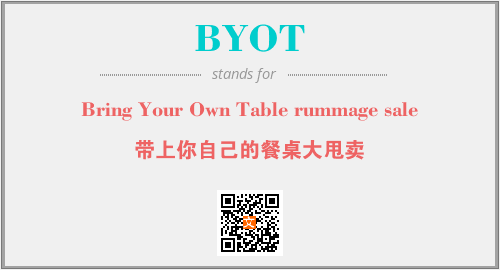 以上为Bring Your Own Table rummage sale英文缩略词BYOT的中文解释,以及该英文缩写在英语的流行度、分类和应用领域方面的信息。