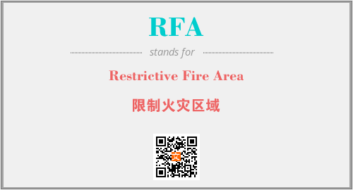 英文缩略词“RFA”经常作为“Restrictive Fire Area”的英文缩写来使用,中文表示:“限制火灾区域”。本文将详细介绍英文缩写词RFA所代表英文单词,其对应的中文拼音、详细解释以及在英语中的流行度。此外,还有关于缩略词RFA的分类、应用领域及相关应用示例等。