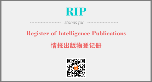 英文缩略词“RIP”经常作为“Register of Intelligence Publications”的英文缩写来使用,中文表示:“情报出版物登记册”。本文将详细介绍英文缩写词RIP所代表英文单词,其对应的中文拼音、详细解释以及在英语中的流行度。此外,还有关于缩略词RIP的分类、应用领域及相关应用示例等。