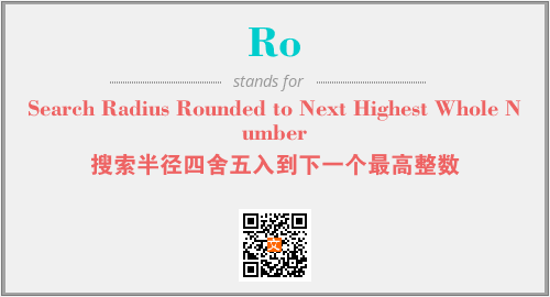 上述内容是“Search Radius Rounded to Next Highest Whole Number”作为“Ro”的缩写,解释为“搜索半径四舍五入到下一个最高整数”时的信息,以及英文缩略词Ro所代表的英文单词,其对应的中文拼音、详细解释以及在英文中的流行度和相关分类、应用领域及应用示例等。