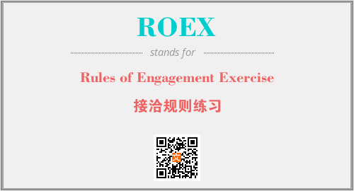 英文缩略词“ROEX”经常作为“Rules of Engagement Exercise”的英文缩写来使用,中文表示:“接洽规则练习”。本文将详细介绍英文缩写词ROEX所代表英文单词,其对应的中文拼音、详细解释以及在英语中的流行度。此外,还有关于缩略词ROEX的分类、应用领域及相关应用示例等。