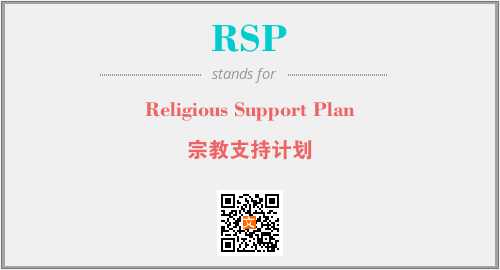 上述内容是“Religious Support Plan”作为“RSP”的缩写,解释为“宗教支持计划”时的信息,以及英文缩略词RSP所代表的英文单词,其对应的中文拼音、详细解释以及在英文中的流行度和相关分类、应用领域及应用示例等。