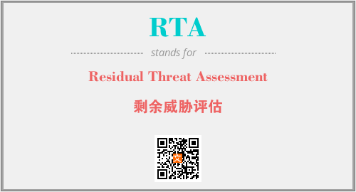 上述内容是“Residual Threat Assessment”作为“RTA”的缩写,解释为“剩余威胁评估”时的信息,以及英文缩略词RTA所代表的英文单词,其对应的中文拼音、详细解释以及在英文中的流行度和相关分类、应用领域及应用示例等。