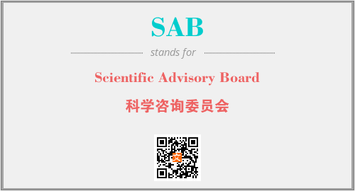 以上为Scientific Advisory Board英文缩略词SAB的中文解释,以及该英文缩写在英语的流行度、分类和应用领域方面的信息。