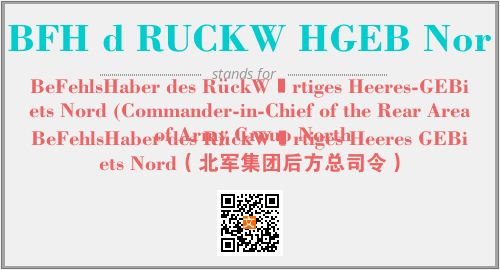 "BFH d RUCKW HGEB Nor - BeFehlsHaber des RückWärtiges Heeres GEBiets Nord(北军集团后方总司令) ." [引用日期]. <https://www.suoxie123.com/a/5D75A.html>.