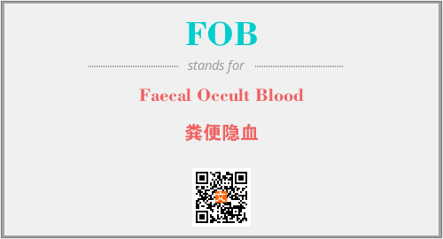 上述内容是“Faecal Occult Blood”作为“FOB”的缩写,解释为“粪便隐血”时的信息,以及英文缩略词FOB所代表的英文单词,其对应的中文拼音、详细解释以及在英文中的流行度和相关分类、应用领域及应用示例等。