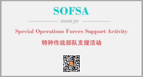 上述内容是“Special Operations Forces Support Activity”作为“SOFSA”的缩写,解释为“特种作战部队支援活动”时的信息,以及英文缩略词SOFSA所代表的英文单词,其对应的中文拼音、详细解释以及在英文中的流行度和相关分类、应用领域及应用示例等。