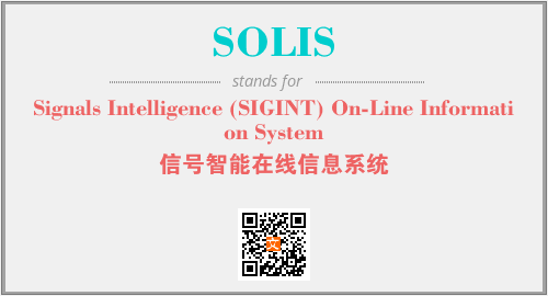 上述内容是“Signals Intelligence (SIGINT) On-Line Information System”作为“SOLIS”的缩写,解释为“信号智能在线信息系统”时的信息,以及英文缩略词SOLIS所代表的英文单词,其对应的中文拼音、详细解释以及在英文中的流行度和相关分类、应用领域及应用示例等。