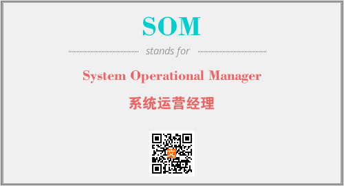英文缩略词“SOM”经常作为“System Operational Manager”的英文缩写来使用,中文表示:“系统运营经理”。本文将详细介绍英文缩写词SOM所代表英文单词,其对应的中文拼音、详细解释以及在英语中的流行度。此外,还有关于缩略词SOM的分类、应用领域及相关应用示例等。