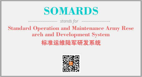 以上为Standard Operation and Maintenance Army Research and Development System英文缩略词SOMARDS的中文解释,以及该英文缩写在英语的流行度、分类和应用领域方面的信息。