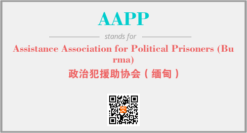 英文缩略词“AAPP”经常作为“Assistance Association for Political Prisoners (Burma)”的英文缩写来使用,中文表示:“政治犯援助协会(缅甸)”。本文将详细介绍英文缩写词AAPP所代表英文单词,其对应的中文拼音、详细解释以及在英语中的流行度。此外,还有关于缩略词AAPP的分类、应用领域及相关应用示例等。