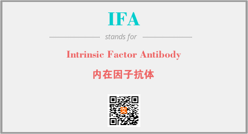 上述内容是“Intrinsic Factor Antibody”作为“IFA”的缩写,解释为“内在因子抗体”时的信息,以及英文缩略词IFA所代表的英文单词,其对应的中文拼音、详细解释以及在英文中的流行度和相关分类、应用领域及应用示例等。