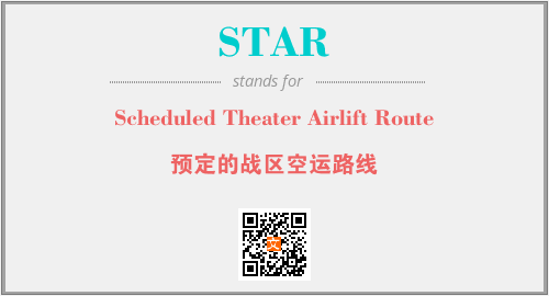 上述内容是“Scheduled Theater Airlift Route”作为“STAR”的缩写,解释为“预定的战区空运路线”时的信息,以及英文缩略词STAR所代表的英文单词,其对应的中文拼音、详细解释以及在英文中的流行度和相关分类、应用领域及应用示例等。