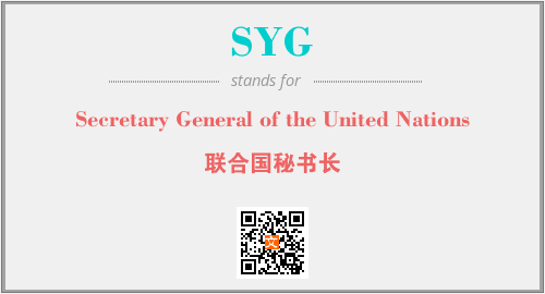 上述内容是“Secretary General of the United Nations”作为“SYG”的缩写,解释为“联合国秘书长”时的信息,以及英文缩略词SYG所代表的英文单词,其对应的中文拼音、详细解释以及在英文中的流行度和相关分类、应用领域及应用示例等。