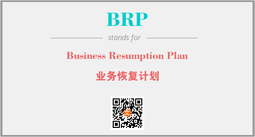 英文缩略词“BRP”经常作为“Business Resumption Plan”的英文缩写来使用,中文表示:“业务恢复计划”。本文将详细介绍英文缩写词BRP所代表英文单词,其对应的中文拼音、详细解释以及在英语中的流行度。此外,还有关于缩略词BRP的分类、应用领域及相关应用示例等。