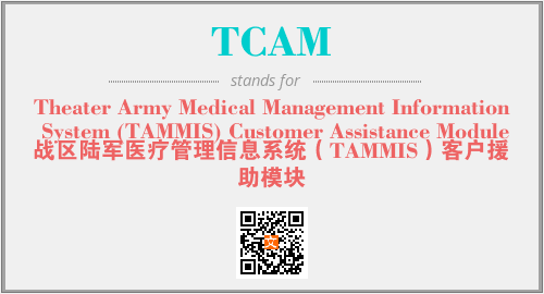 英文缩略词“TCAM”经常作为“Theater Army Medical Management Information System (TAMMIS) Customer Assistance Module”的英文缩写来使用,中文表示:“战区陆军医疗管理信息系统(TAMMIS)客户援助模块”。本文将详细介绍英文缩写词TCAM所代表英文单词,其对应的中文拼音、详细解释以及在英语中的流行度。此外,还有关于缩略词TCAM的分类、应用领域及相关应用示例等。