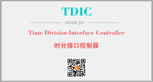 英文缩略词“TDIC”经常作为“Time Division Interface Controller”的英文缩写来使用,中文表示:“时分接口控制器”。本文将详细介绍英文缩写词TDIC所代表英文单词,其对应的中文拼音、详细解释以及在英语中的流行度。此外,还有关于缩略词TDIC的分类、应用领域及相关应用示例等。