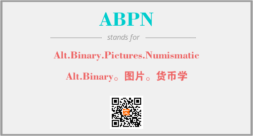 英文缩略词“ABPN”经常作为“Alt.Binary.Pictures.Numismatic”的英文缩写来使用,中文表示:“Alt.Binary。图片。货币学”。本文将详细介绍英文缩写词ABPN所代表英文单词,其对应的中文拼音、详细解释以及在英语中的流行度。此外,还有关于缩略词ABPN的分类、应用领域及相关应用示例等。