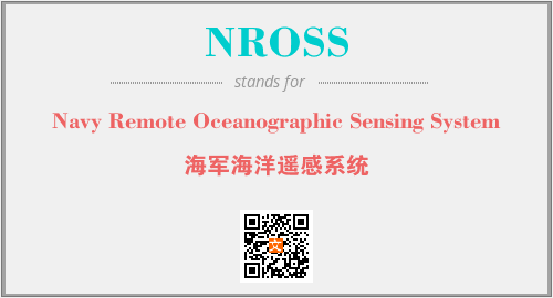 上述内容是“Navy Remote Oceanographic Sensing System”作为“NROSS”的缩写,解释为“海军海洋遥感系统”时的信息,以及英文缩略词NROSS所代表的英文单词,其对应的中文拼音、详细解释以及在英文中的流行度和相关分类、应用领域及应用示例等。