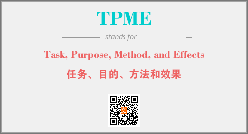以上为Task, Purpose, Method, and Effects英文缩略词TPME的中文解释,以及该英文缩写在英语的流行度、分类和应用领域方面的信息。