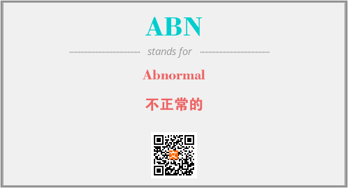 英文缩略词“ABN”经常作为“Abnormal”的英文缩写来使用,中文表示:“不正常的”。本文将详细介绍英文缩写词ABN所代表英文单词,其对应的中文拼音、详细解释以及在英语中的流行度。此外,还有关于缩略词ABN的分类、应用领域及相关应用示例等。