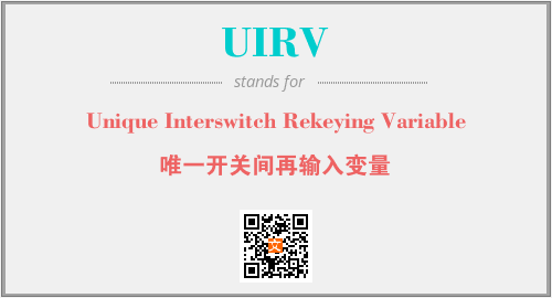 上述内容是“Unique Interswitch Rekeying Variable”作为“UIRV”的缩写,解释为“唯一开关间再输入变量”时的信息,以及英文缩略词UIRV所代表的英文单词,其对应的中文拼音、详细解释以及在英文中的流行度和相关分类、应用领域及应用示例等。