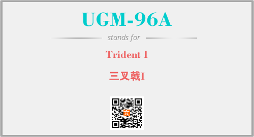 英文缩略词“UGM-96A”经常作为“Trident I”的英文缩写来使用,中文表示:“三叉戟I”。本文将详细介绍英文缩写词UGM-96A所代表英文单词,其对应的中文拼音、详细解释以及在英语中的流行度。此外,还有关于缩略词UGM-96A的分类、应用领域及相关应用示例等。