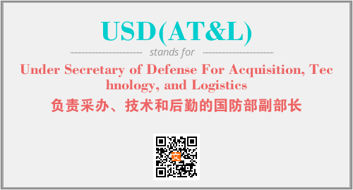 上述内容是“Under Secretary of Defense For Acquisition, Technology, and Logistics”作为“USD(AT&L)”的缩写,解释为“负责采办、技术和后勤的国防部副部长”时的信息,以及英文缩略词USD(AT&L)所代表的英文单词,其对应的中文拼音、详细解释以及在英文中的流行度和相关分类、应用领域及应用示例等。