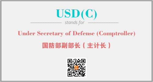 上述内容是“Under Secretary of Defense (Comptroller)”作为“USD(C)”的缩写,解释为“国防部副部长(主计长)”时的信息,以及英文缩略词USD(C)所代表的英文单词,其对应的中文拼音、详细解释以及在英文中的流行度和相关分类、应用领域及应用示例等。