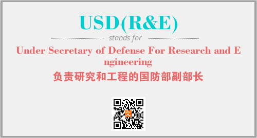 上述内容是“Under Secretary of Defense For Research and Engineering”作为“USD(R&E)”的缩写,解释为“负责研究和工程的国防部副部长”时的信息,以及英文缩略词USD(R&E)所代表的英文单词,其对应的中文拼音、详细解释以及在英文中的流行度和相关分类、应用领域及应用示例等。