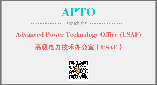 英文缩略词“APTO”经常作为“Advanced Power Technology Office (USAF)”的英文缩写来使用,中文表示:“高级电力技术办公室(USAF)”。本文将详细介绍英文缩写词APTO所代表英文单词,其对应的中文拼音、详细解释以及在英语中的流行度。此外,还有关于缩略词APTO的分类、应用领域及相关应用示例等。