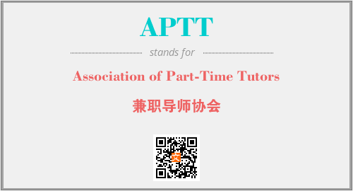 英文缩略词“APTT”经常作为“Association of Part-Time Tutors”的英文缩写来使用,中文表示:“兼职导师协会”。本文将详细介绍英文缩写词APTT所代表英文单词,其对应的中文拼音、详细解释以及在英语中的流行度。此外,还有关于缩略词APTT的分类、应用领域及相关应用示例等。