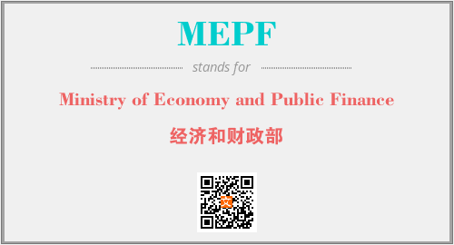 英文缩略词“MEPF”经常作为“Ministry of Economy and Public Finance”的英文缩写来使用,中文表示:“经济和财政部”。本文将详细介绍英文缩写词MEPF所代表英文单词,其对应的中文拼音、详细解释以及在英语中的流行度。此外,还有关于缩略词MEPF的分类、应用领域及相关应用示例等。