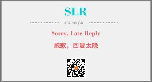 以上为Sorry, Late Reply英文缩略词SLR的中文解释,以及该英文缩写在英语的流行度、分类和应用领域方面的信息。