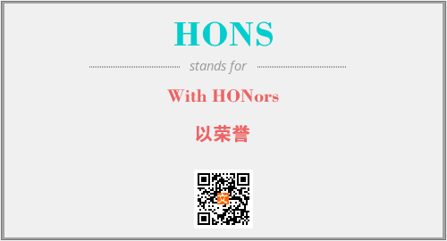 上述内容是“With HONors”作为“HONS”的缩写,解释为“以荣誉”时的信息,以及英文缩略词HONS所代表的英文单词,其对应的中文拼音、详细解释以及在英文中的流行度和相关分类、应用领域及应用示例等。