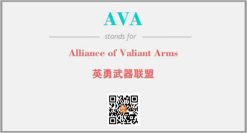 上述内容是“Alliance of Valiant Arms”作为“AVA”的缩写,解释为“英勇武器联盟”时的信息,以及英文缩略词AVA所代表的英文单词,其对应的中文拼音、详细解释以及在英文中的流行度和相关分类、应用领域及应用示例等。