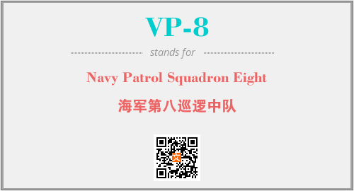 英文缩略词“VP-8”经常作为“Navy Patrol Squadron Eight”的英文缩写来使用,中文表示:“海军第八巡逻中队”。本文将详细介绍英文缩写词VP-8所代表英文单词,其对应的中文拼音、详细解释以及在英语中的流行度。此外,还有关于缩略词VP-8的分类、应用领域及相关应用示例等。