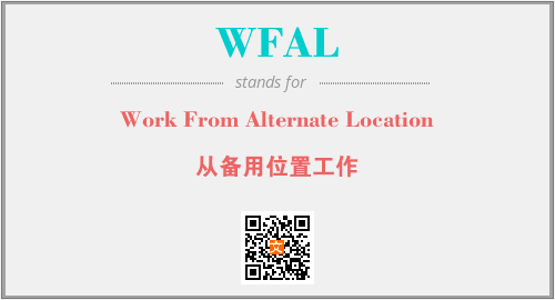 英文缩略词“WFAL”经常作为“Work From Alternate Location”的英文缩写来使用,中文表示:“从备用位置工作”。本文将详细介绍英文缩写词WFAL所代表英文单词,其对应的中文拼音、详细解释以及在英语中的流行度。此外,还有关于缩略词WFAL的分类、应用领域及相关应用示例等。