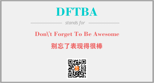 以上为Don\'t Forget To Be Awesome英文缩略词DFTBA的中文解释,以及该英文缩写在英语的流行度、分类和应用领域方面的信息。